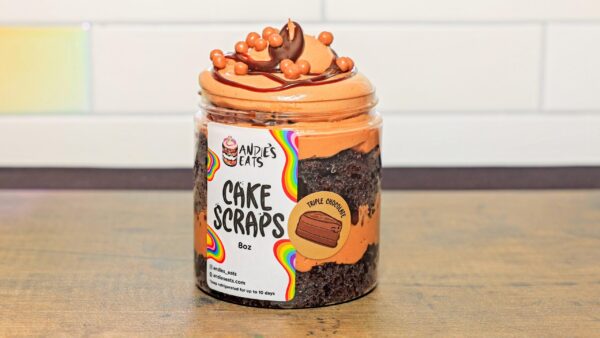 Chocolate cake layered with chocolate buttercream, chocolate ganache and chocolate sprinkle crunch